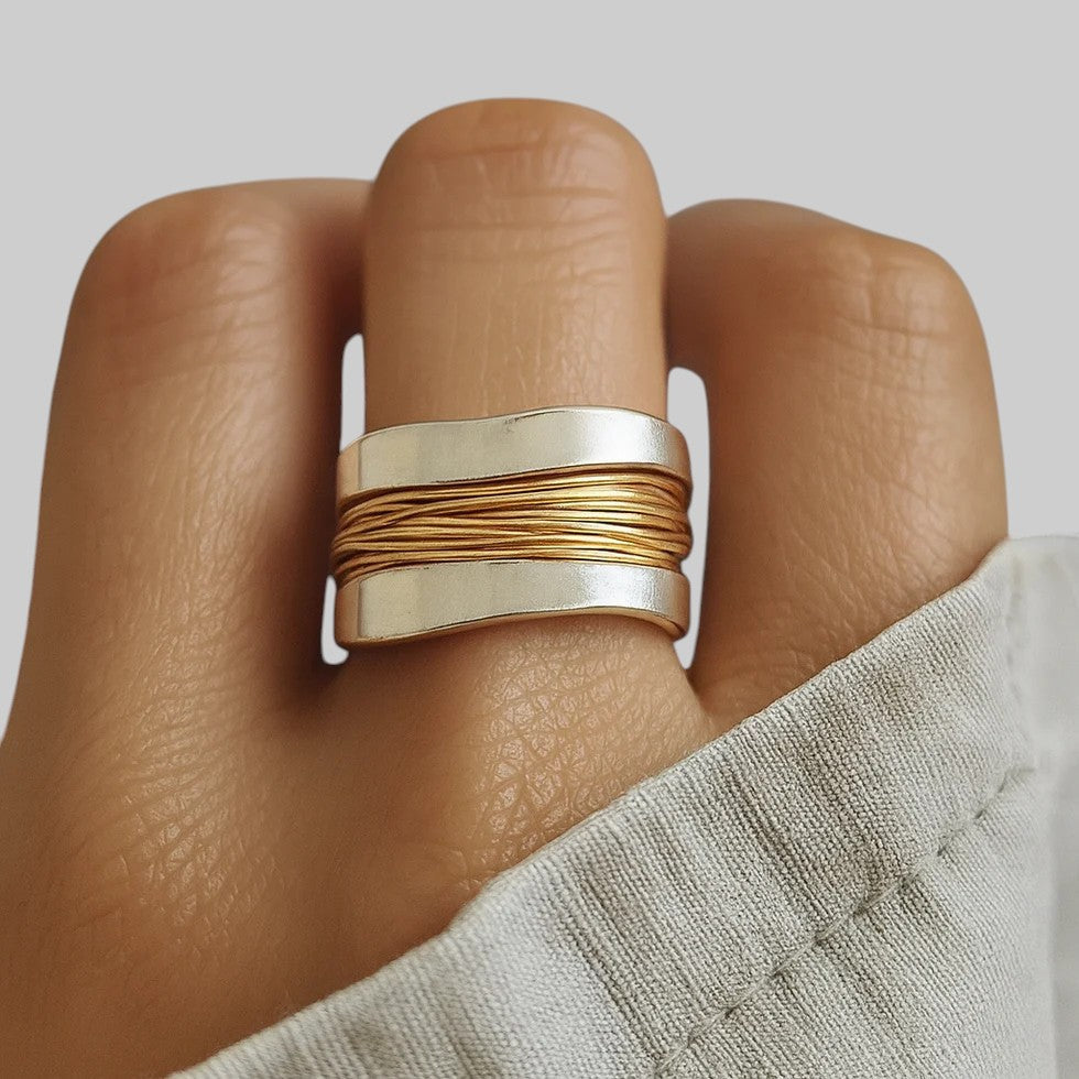 PRSTEŇ SO STRIEBORNÝMI A ZLATÝMI NIŤAMI
