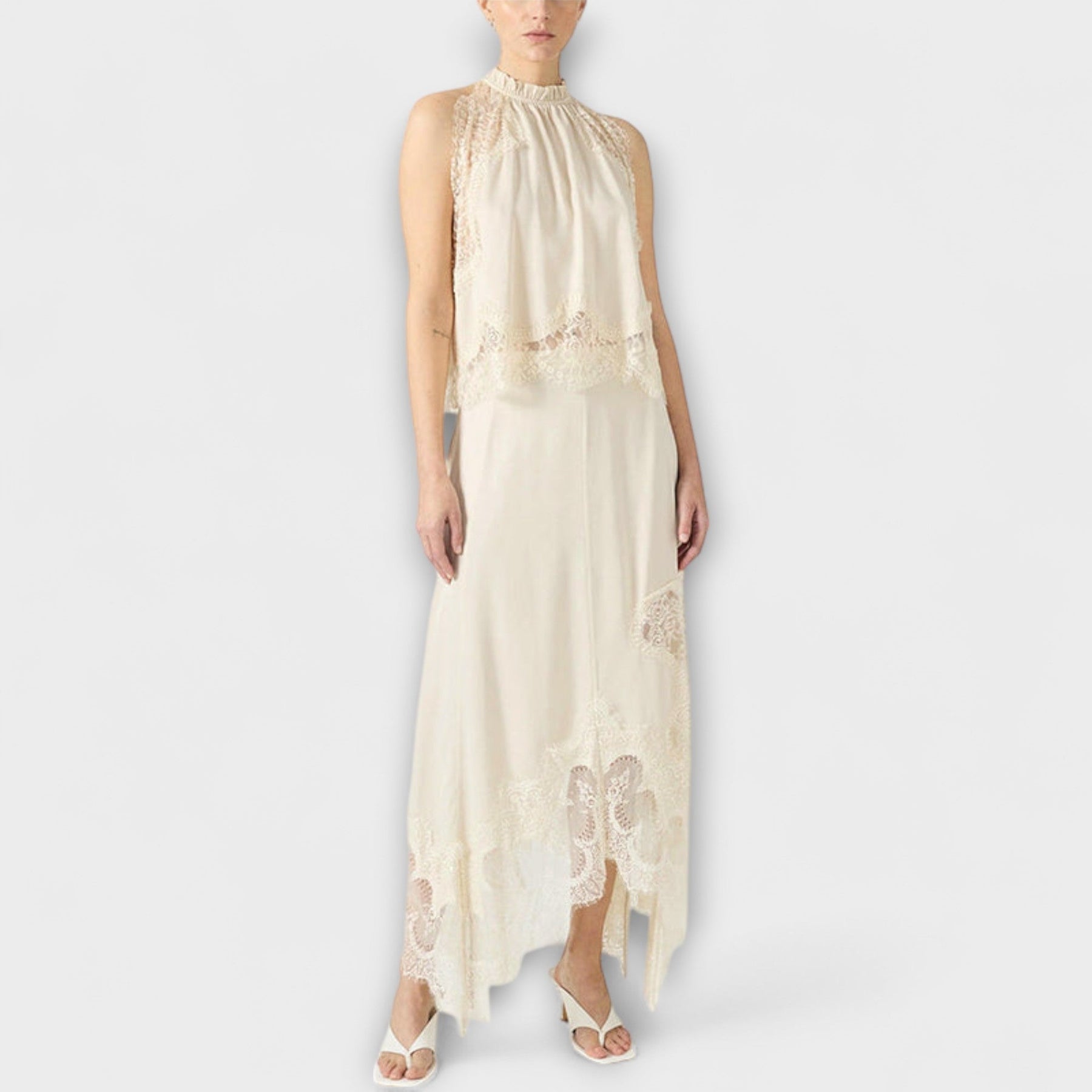 Kaia  | Saténová blúzka s čipkovým lemom a plisovaným výstrihom v sade