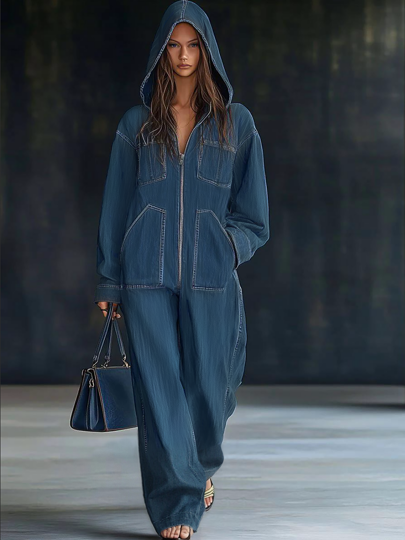 Oyrosy predstavlja Ženski ležérny široki vintage džins overal sa kapuljačom i dugim rukavima, savršena kombinacija stila, pohodliei i praktičnosti koja će unaprediti vašu ležernu garderobu. Kombinacija vintage vibra sa modernim elementima čini ovaj overal svestranom komadom za vaše svakodnevne avanture.